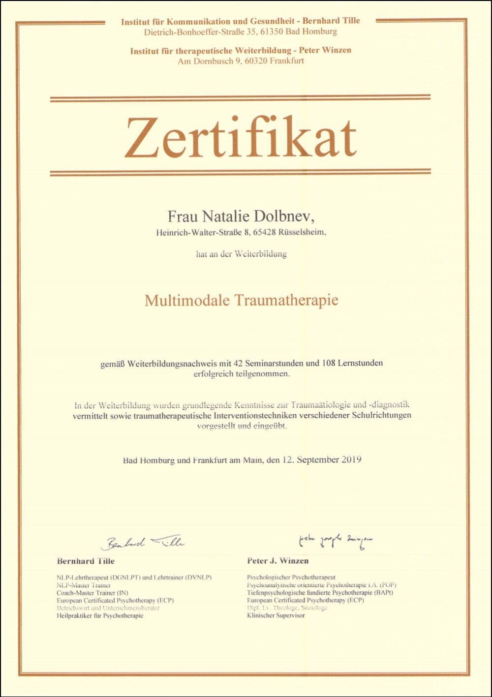 - 2019 Weiterbildung ,,Multimodale Traumatherapie ,, im Institut für Kommunikation und Gesundheit-Bernhard Tille & Peter Winzen